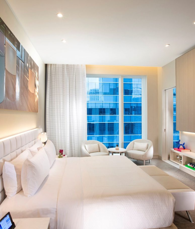 Enjoy an invigorating workout on the Matrix equipment and Peloton bicycles in the expansive fitness studio, then refresh in your room with MiN NEW YORK bath products in the oversized bathroom with a separate soaking tub, shower, dual sinks and motorized privacy blinds. Every room includes a beautiful Through the Lens coffee table book that will take you on a journey through the Dallas Arts District.