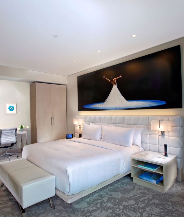 This ADA Accessible Masterpiece Suite overlooks the Wyly Theatre in the heart of the Dallas Arts District and Urban Garden. A favorite suite for special occasions such as weddings or galas, this suite offers stunning curated photography of the arts district along with commissioned contemporary art throughout. The 963 square foot suite combines luxurious comfort with modern sophistication.